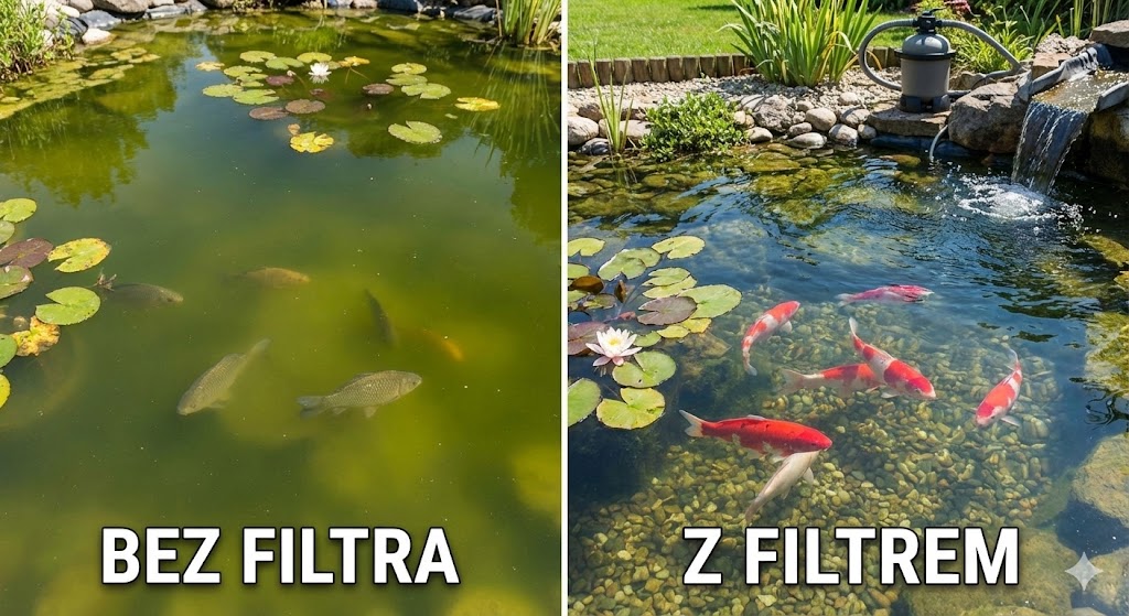 Krystaliczna woda: Tylko filtr z lampą UV-C skutecznie eliminuje efekt „zupy szczawiowej” (zielonej wody).