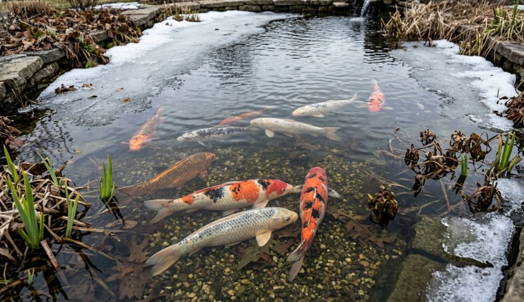 Karp nie zamarza na śmierć (chyba że wyrąbałeś przerębel siekierą i wybudziłeś go w środku zimy). Zimą ryba przechodzi w stan letargu, drastycznie zwalnia tętno i żyje wyłącznie z własnych rezerw tłuszczowych. Jeśli jesienią zignorowałeś karmienie karpi Koi (odpowiednią biochemię żywienia i jakość białka), ryba po prostu nie zdążyła nabrać masy na zimę.