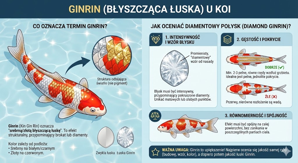 Ginrin (Błyszcząca łuska): Co oznacza ten termin i jak oceniać diamentowy połysk u Koi?