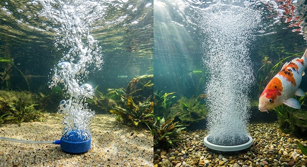 Dlaczego? Kolumna milionów mikrobąbelków pędzących od dna ku powierzchni tworzy potężny pionowy prąd wody (tzw. airlift effect). Ten prąd zaciąga wodę z obrzeży stawu po dnie wprost do odpływu dennego. W ten sposób powietrze nie tylko tleni, ale i mechanicznie zamiata dno z odchodów!