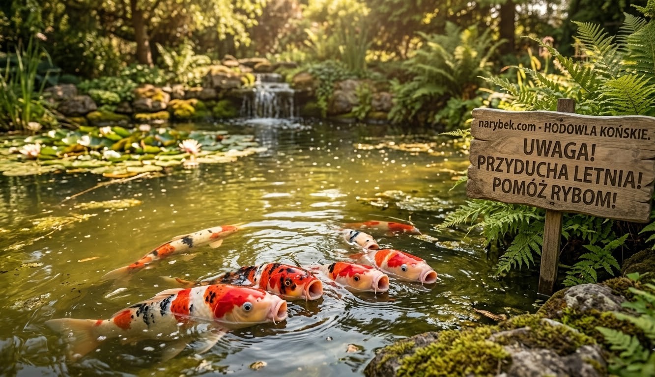 - Temperatura wody: To prosta fizyka. Ciepła woda ma drastycznie mniejszą zdolność do rozpuszczania i zatrzymywania tlenu niż woda zimna. Gdy temperatura w stawie przekracza 25°C, pojemność tlenowa spada do niebezpiecznego minimum.