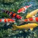W ciepłej wodzie karmienie karpi Koi odbywa się na poziomie 2% masy ciała dziennie.