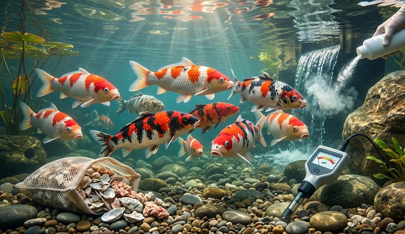 FAQ – pH i KH w stawie z Koi: Deszczówka, wahania dobowe i wapno