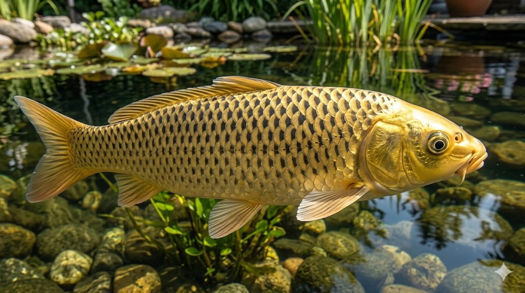 - Kin Matsuba (Metaliczna): Bezapelacyjny król stawu. Ryba o ciele pokrytym metalicznym, złotym pigmentem. Połączenie błyszczącego złota z ciemną siatką Matsuba tworzy jedne z najbardziej zjawiskowych ryb na świecie.